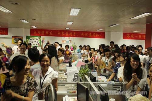 大会开场,伙伴们的热情象征着明通人的激情文化