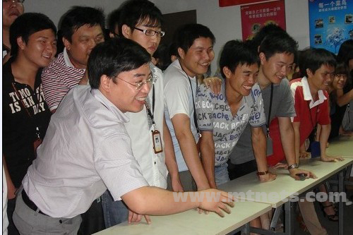 张国君套中了很多人都想要的精美红酒,众伙伴鼓掌中