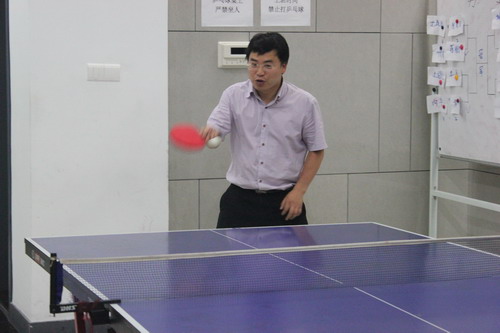参赛的选手不全是经常打乒乓球的强者,有些还只是初学者,抱着重在参与,重在锻炼的心态加入到比赛中来,作为第一届比赛的季军陈总自然也没有错过,但遗憾的是签运不佳,第一轮就碰到了最终的冠军选手老潘。