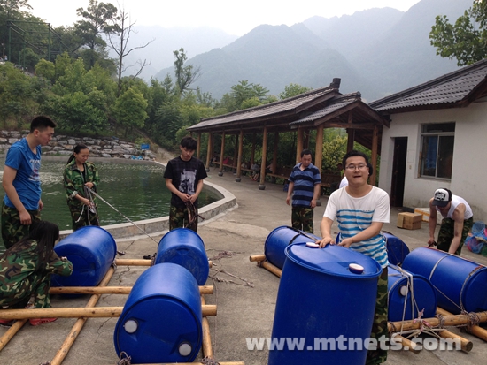 项目部:大家配合扎皮筏