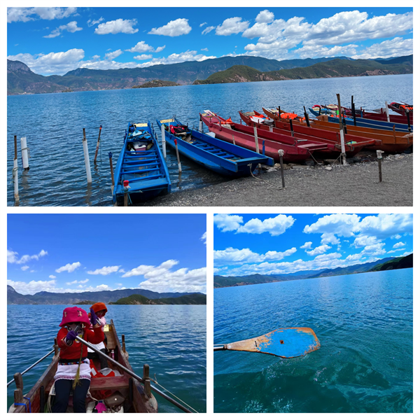 领略了摩梭人独特的民族风情之后,前往大洛水村。坐上猪槽船,与泸沽湖来一次零距离亲密接触,迎着微风,湖光山色尽收眼底,这便是大自然给予的最好馈赠