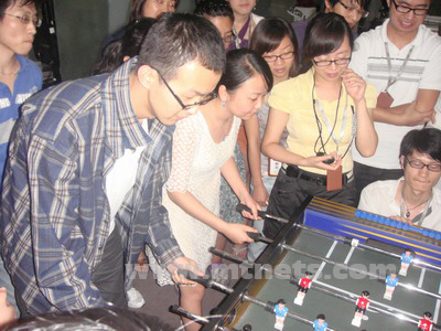 7月初,在南非世界杯如火如荼进行着的时候,明通公司桌上足球比赛也开打了。桌上足球是个新鲜的玩意,绝大部分人都没玩过,虽然如此,但依然有64位同事激情的参与,公司总经理、市场总监等足球爱好者也纷纷参与其中。