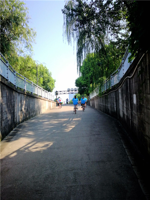 出发了,一共有七个打卡,星耀城、吉利、鑫都汇、白马湖、网易、阿里和中南。七点四十分出发还好,天气还不算热,大家争先恐后出门