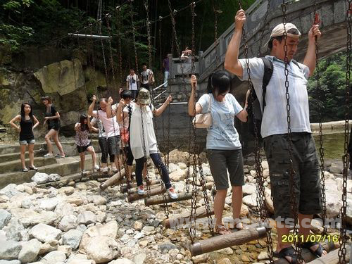 杨正胜领头,集体玩索桥