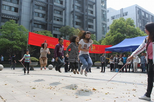 代表公司参与的有三个飞镖队,两个跳绳队,大家都是抱着重在参与的心态而报名的,平时就算想运动也因为没有场地或者工作忙绿而不能如愿,所以一听到这个活动,几位想运动的同学第一时间报了名。