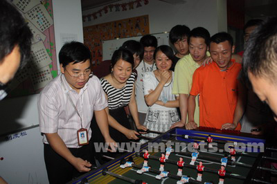 7月初,在南非世界杯如火如荼进行着的时候,明通公司桌上足球比赛也开打了。桌上足球是个新鲜的玩意,绝大部分人都没玩过,虽然如此,但依然有64位同事激情的参与,公司总经理、市场总监等足球爱好者也纷纷参与其中。