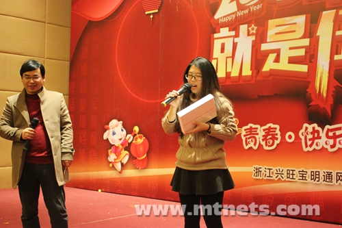 小品、歌曲、舞蹈,多才多艺的明通人以一个个精心准备的节目传递欢笑。年会现场载歌载舞,精彩的节目令观众直呼“过瘾”!第一个节目是安防网、兴旺宝联盟与化工仪器网编辑共同准备的小品《卖火柴的“窦碧”》,卖火柴的小女孩由男生编辑反串演绎,其出色的表演赢得了超高人气与阵阵掌声。接着,项目部、机床网与研发部的情景剧《广告风云》不仅剧本出彩,彭坤饰演小混混“大飞”,刻画人物更是入木三分,让人印象深刻。此外杜陈延与杨麟的歌曲表演《你最珍贵》,SEO美少女战士的舞蹈《nonono》,环保在线、运营支持等部门编导的小品《逆夺龙女》同样精彩万分,最后chem17团队《奔跑吧明通》小品更是博得满堂喝彩。