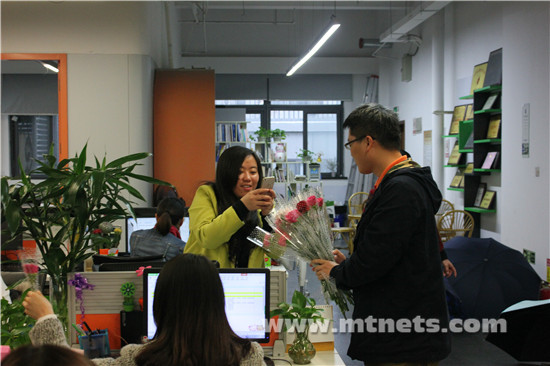 昨天是三八国际女神节,开云体育-开云体育(中国)官方网站200多位女王们享受了半天的法定假期,除此之外,明通里的几位单身男士给每一位女伙伴献花,这一意外的温馨举动让好多女王们欢乐不已!开云体育-开云体育(中国)官方网站向来男女平等,从管理团队到下属员工,女性占了一半还多,来看一下昨天男生们的献花照片吧!