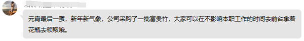 没想到吧,你以为元宵活动结束了,但其实大行政还为我们准备了一批富贵竹,富贵竹在我们公司算是“老朋友”了,几乎人人工位上都有那么几株。通知发出后,大家井然有序地到前台领取,不一会儿,一桶富贵竹就被领光了。